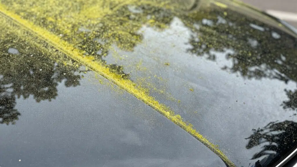 You’ll notice yellow pollen stains lighter cars, especially whites and silvers, embedding deeply and dulling gloss.